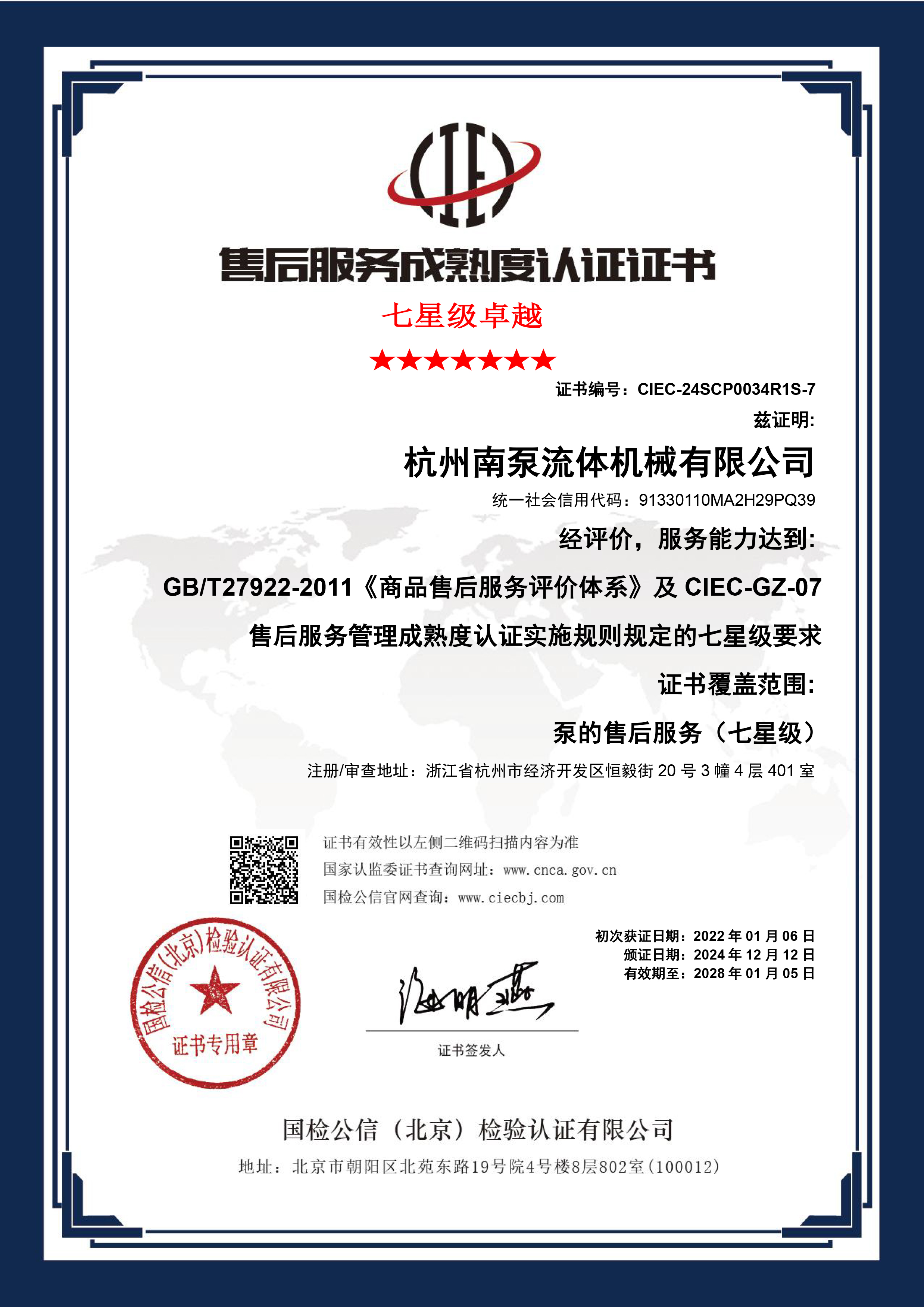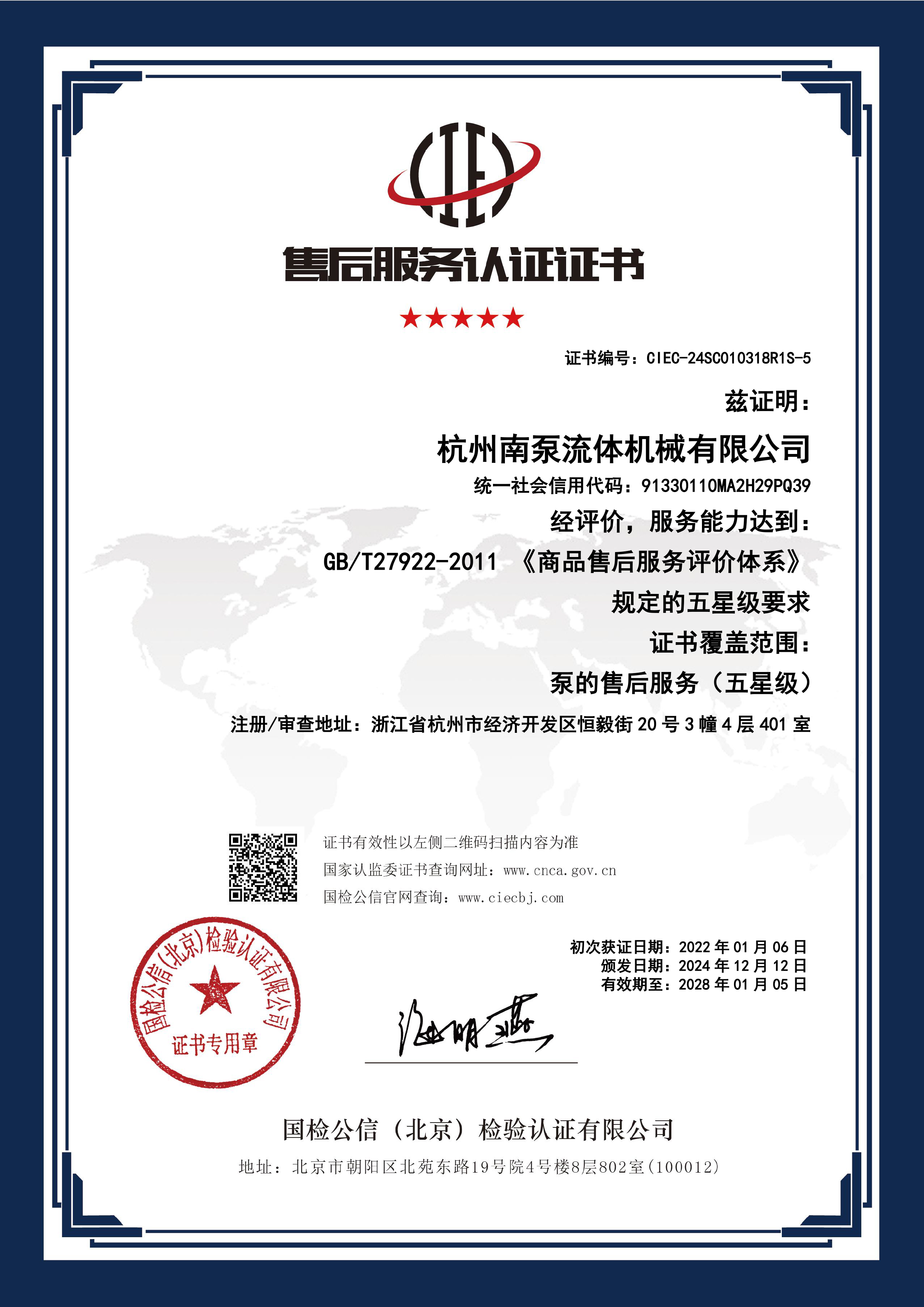 售后五星&七星服務(wù)證書(shū)